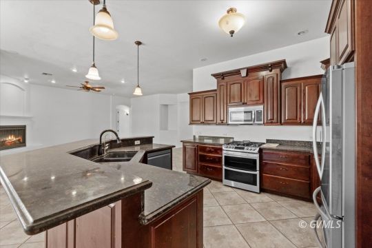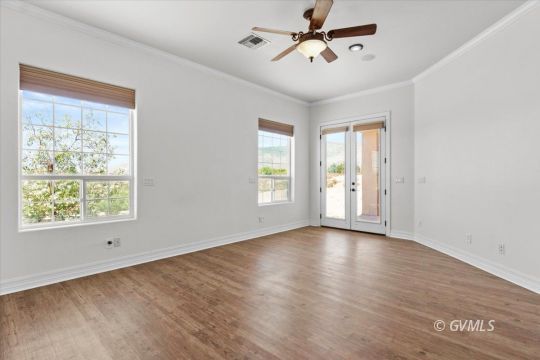 Perched atop a scenic hill, this expansive custom-built home offers the perfect blend of luxury, comfort, and breathtaking natural beauty. Enjoy sweeping panoramic views from nearly every room, with spacious living areas designed to impress and inspire. Step inside to find a warm and inviting great room anchored by a beautiful fireplace, perfect for cozy evenings or elegant entertaining. The open-concept design flows seamlessly into the gourmet kitchen and dining area, all filled with natural light and endless vistas. Working from home is a pleasure in the dedicated office space, while a large bonus room offers endless possibilities, media room, gym, playroom, or guest suite. Step outside to a sprawling covered patio, ideal for year-round entertaining or quiet moments enjoying the view Surrounding the home, you'll find an impressive collection of 29 different fruit and nut trees, all thoughtfully planted and maintained with a fully-automated drip irrigation system. Eco-conscious buyers will appreciate the solar power system, reducing energy costs while promoting sustainable living. With its thoughtful design, elevated location, and stunning surroundings, this one-of-a-kind home i